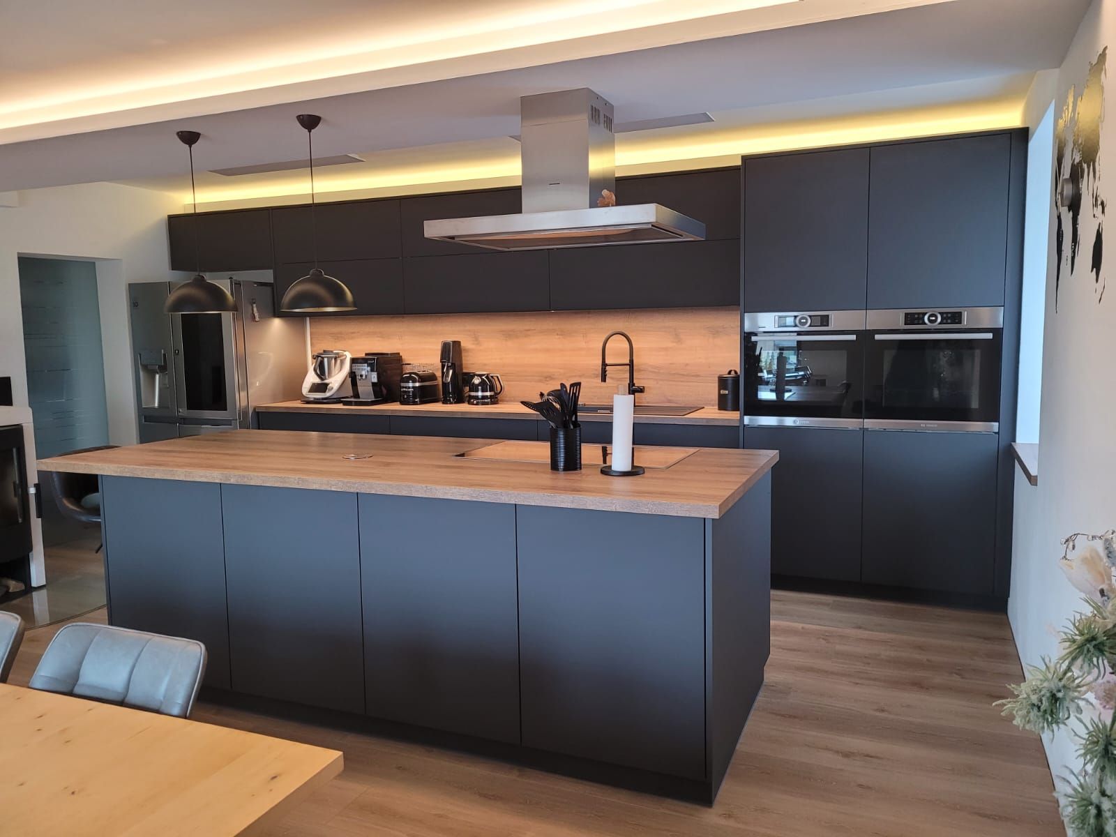 Wir setzen alles daran, dass Ihre neue Küche so wird, wie Sie es sich vorstellen. Planen Sie mit uns gemeinsam Ihr Projekt und machen Sie Ihren Küchentraum zur Realität. Von Standard bis zur Maßanfertigung und darüber hinaus sind wir Meister für Ihre individuelle Küche.